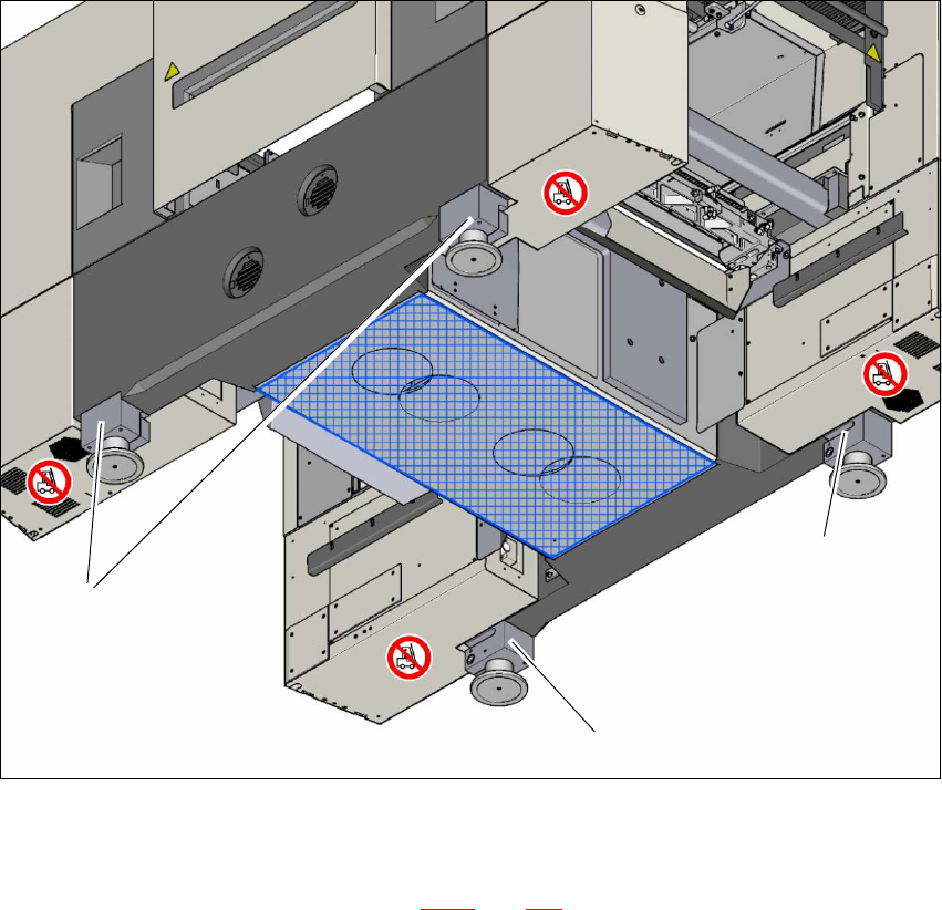 贴片机依靠 4 个支脚站立 (高度适配器)(参见 1,图 4.3 - 2,第 204 页)