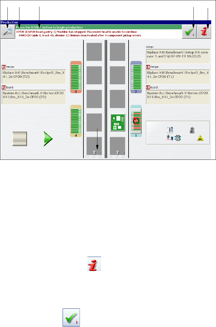 图 5.6 - 1 出现警报消息的 “ 生产 ” 视图 (示例为 SIPLACE X4i 型贴片机)