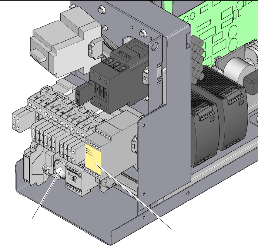 保护接触器组合已包含在供电单元中。它被用于监控 EMERGENCY STOP (急停)电路和安全