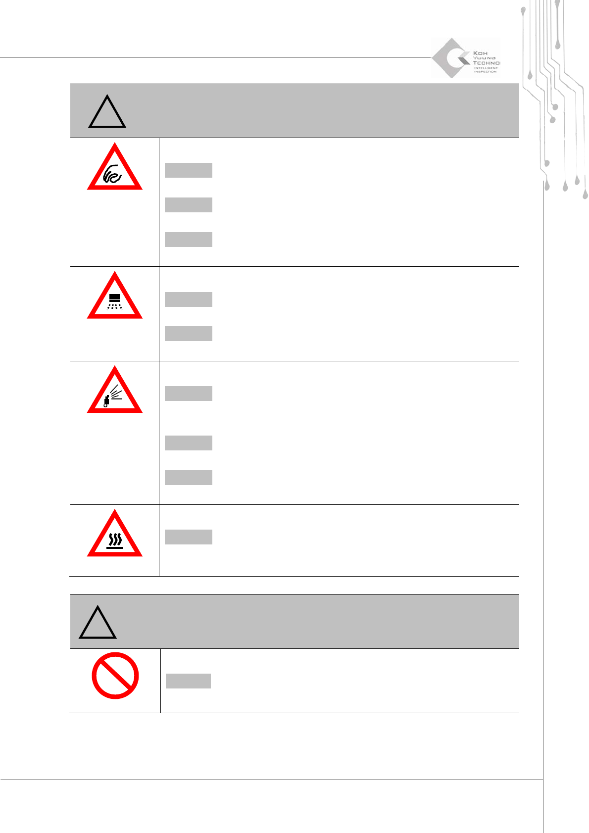 10 | KY -8030 2 3D Solder Paste Inspec tion System V ersion 1.0 K OH Y OUNG T ECHNOLOGY I NC . L OCATION OF S AFETY L ABELS