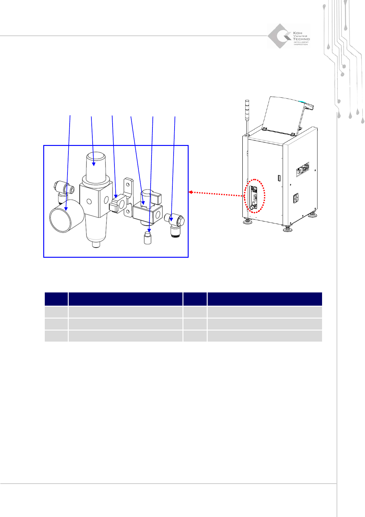 46 | KY -8030 2 3D Solder Paste Inspec tion System V ersion 1.0 K OH Y OUNG T ECHNOLOGY I NC . ② ① ④ ③ ⑤ ⑥ ⑦ ⑧ ⑨ ⑩ 1.2.15. M ANIFOLD C OMPONENT AND S OLENOID V AL VE C HANGE Figure 1-16. Manifold Item Descripti…