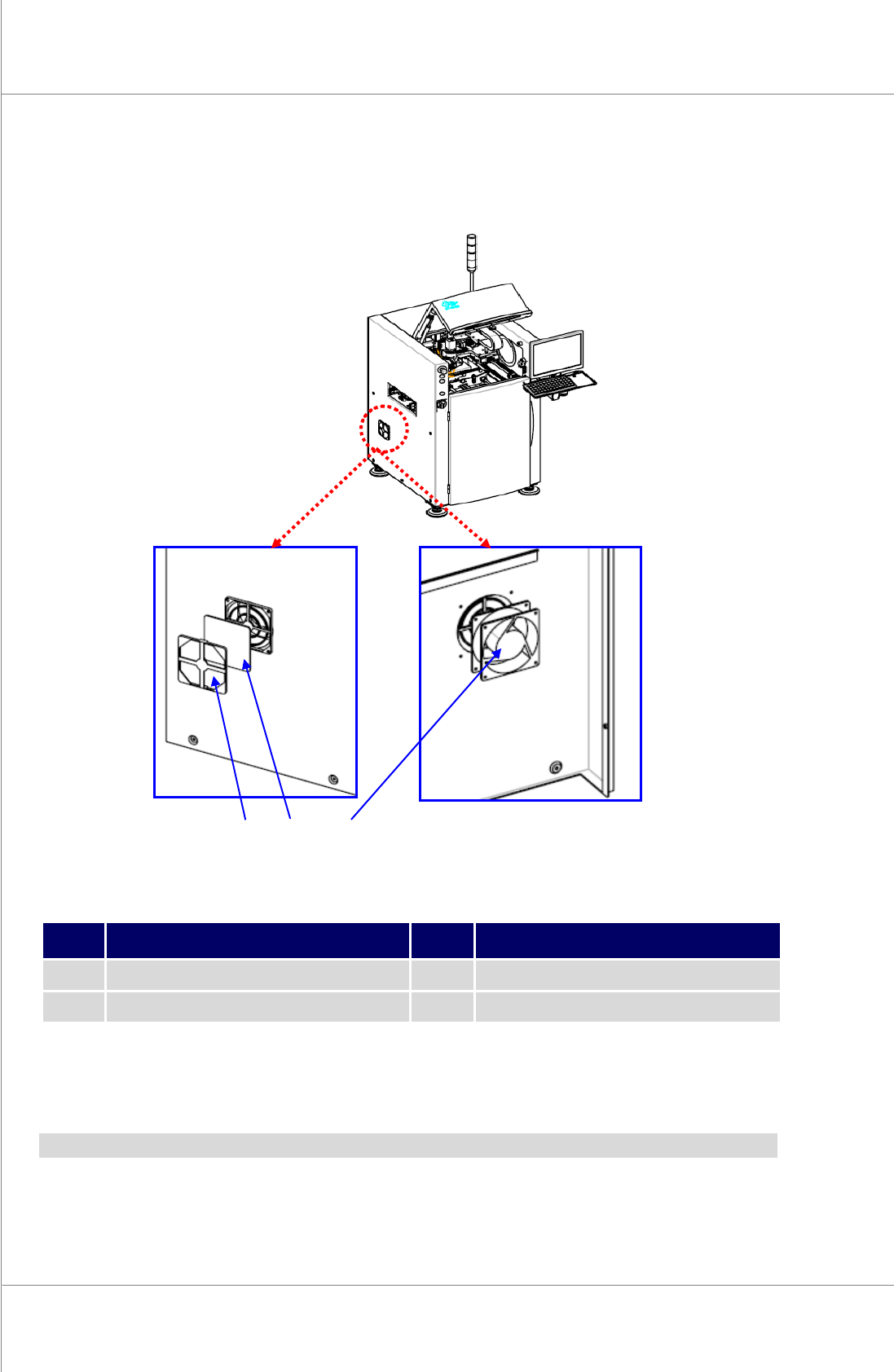 48 | KY -8030 2 3D Solder Paste Inspec tion System V ersion 1.0 K OH Y OUNG T ECHNOLOGY I NC . ② ① ③ 1.2.16. E LECTRIC B OX 1.2.16.1. Fan and Fan Filter Change Figure 1-17. Fan and Fan Filter Item Description I…