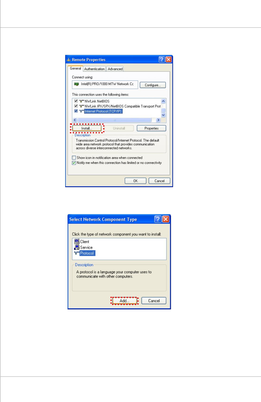 72 | KY -8030 2 3D Solder Paste Inspec tion System V ersion 1.0 K OH Y OUNG T ECHNOLOGY I NC . 9. Click the [Install]. 10. Select “Protocol” and then click the [Add] button.