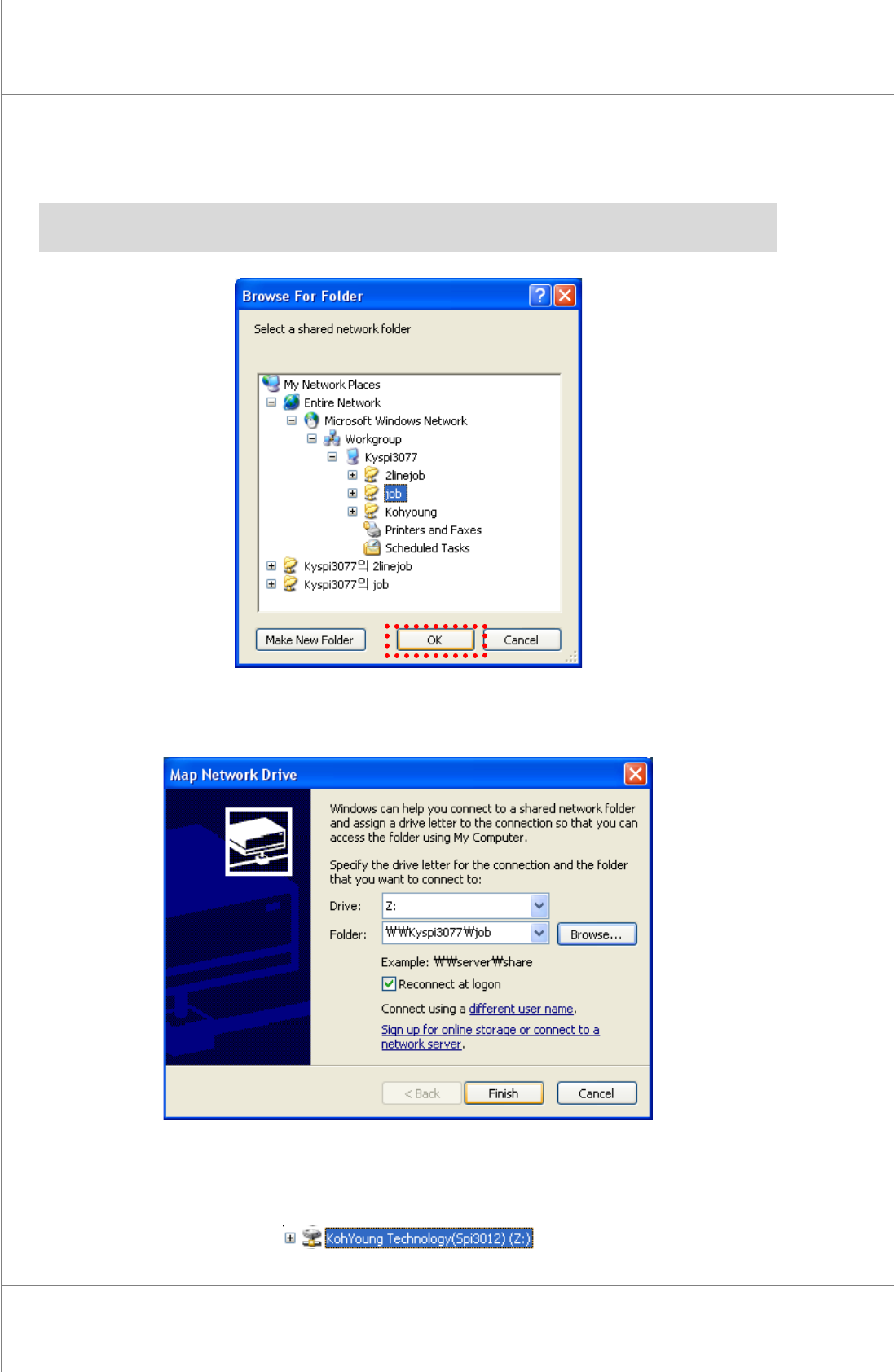5. The network Drive setting is now completed. The network Drive “KohYoung