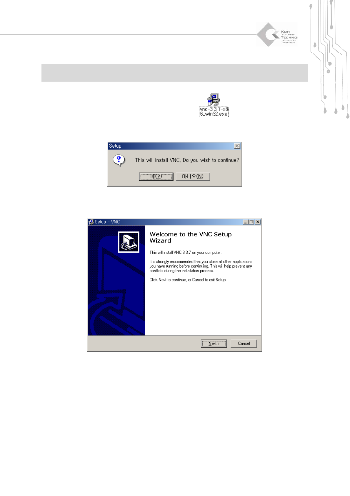 Maintenance Manual | 97 3.6.5. VNC P ROGRAM E XECUTION ※ Note: The VNC program has alrea dy been installed upon the purchase of th is product. If yo u wish to install this progra…