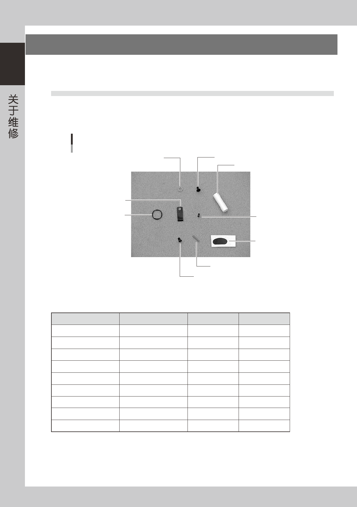 消耗品指随着使用时间会渐渐失去其性能的零部件。本机的消耗品有以下几种,可以在维修时根据具体需要更换。