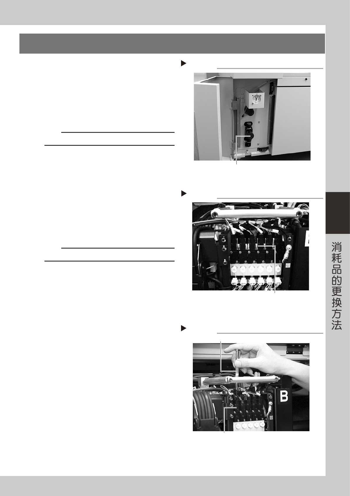 4-2 4 2 . 气 密 接 头 的 更 换 e 1 按 紧 急 停 机 按 钮 。 为 了 安 全 作 业 , 务 必 使 机 器 处 于 紧 急 停 机 状 态 。 2 拆 卸 气 密 接 头 。 用 8 m m 左右 的 六 角 扳 手 从 送 料 器 架 的 下 方 向 上 顶 起 气 密 接 头 。 55 4 0 2- F 8 -0 0 c 注意 切勿损伤输气管。 3 安 装 气 密 接 头 。 从 上 向 下…