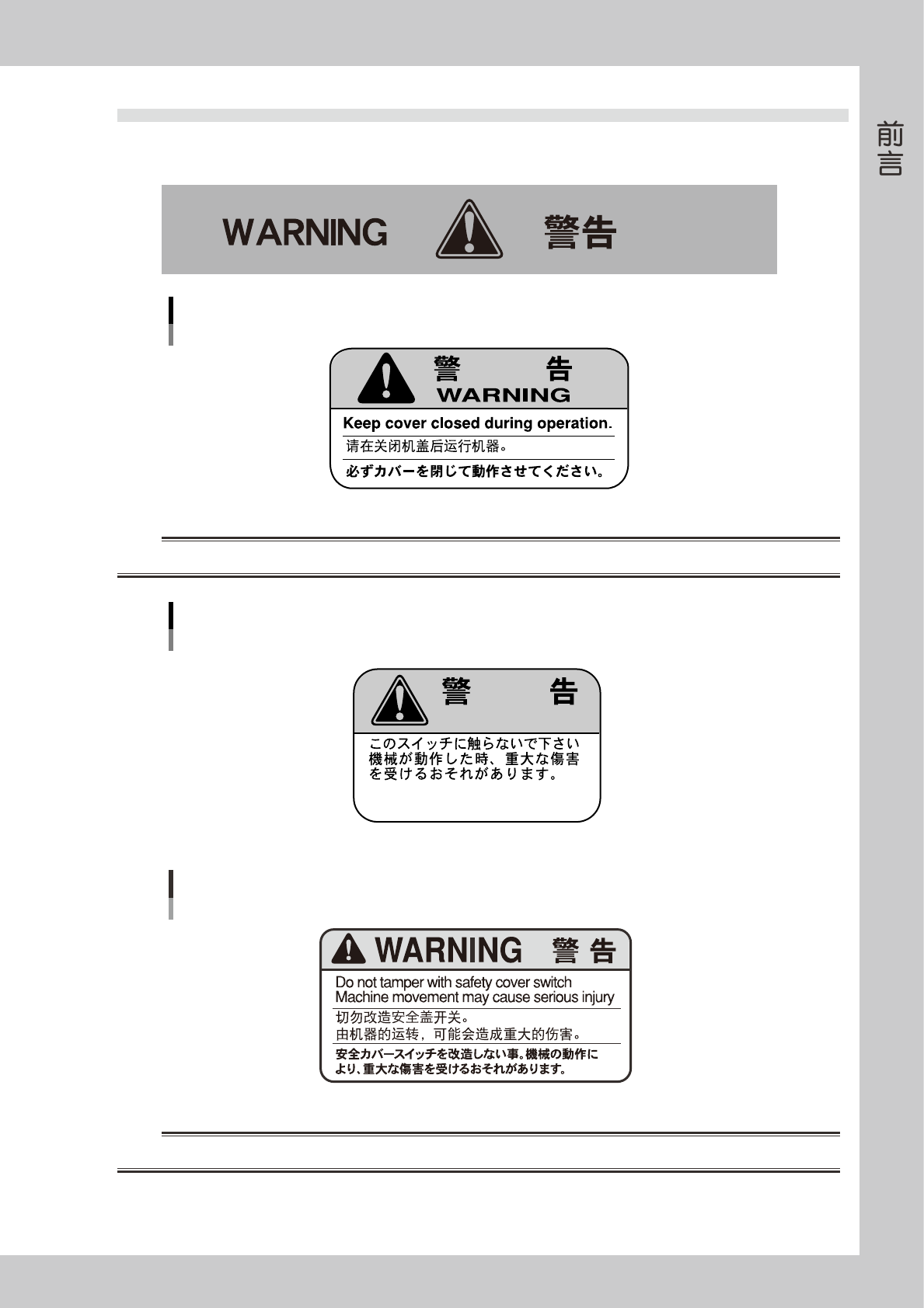 机器运行中,绝对禁止将身体或身体的一部分 ( 头或手 ) 伸入可动部的动作范围。