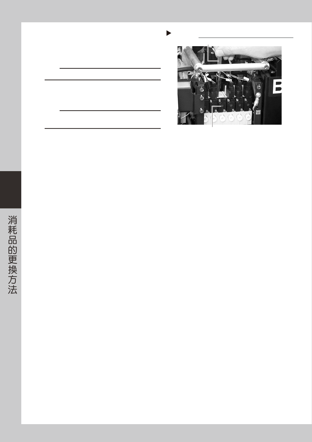 4-3 4 3 . 排 出 器 阀 的 更 换 1 切 断 气 源 和 电 源 。 将 机 器 左 下 面 板 内 的 供 气 / 排 气 开 关 向 右 旋 转 , 切 断 气 源 。 再 退 出 软 件 系 统 , 关 闭 机 器 电 源 。 55 4 0 4- F 8 -0 0 2 剪 断 线 束 的 捆 扎 带 。 用 剪 钳 剪 断 贴 装 头 机 架 上 部 将 全 部 线 束 捆 扎 在 一 起 的 捆 扎 带…