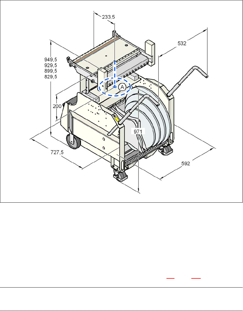 Skötselinstruktion SIPLACE D3 3 Tekniska data för automaten Från programversion SR.605.xx Utgåva 07/2008 SE 3.10 Komponentvagn 169 3.10.4 Mått och tyngd punkt 3 Bild 3.10 - 4 Mått, alla mått i mm Komponentvagne ns tyngdp…