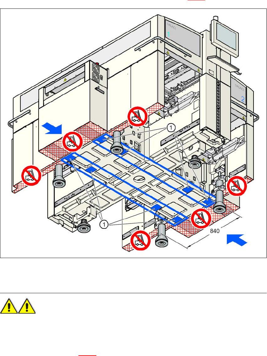 → Lyft upp automaten med gaffeltrucken ca. 35 cm. Så undviker ni skador på era fötter om ma-