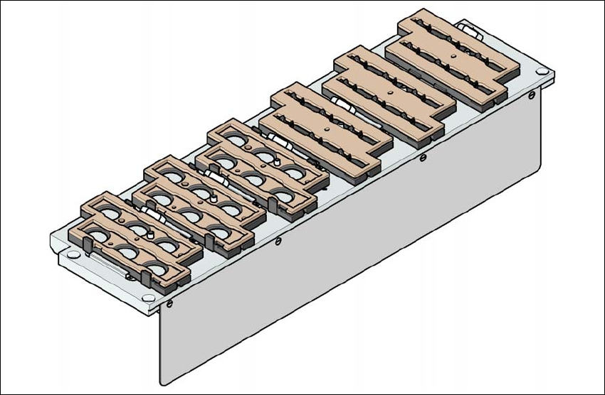 sitter på en gemensam hållare. De är centrerade med två cylinderstift och fixerade med klamrar.