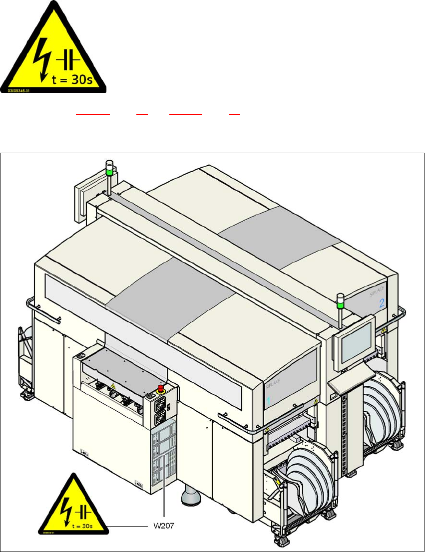 2 Driftsäkerhet Skötselinstruktion SIPLACE D3 2.2 Varningsskyltar Från programversion SR.605.xx Utgåva 07/2008 SE 52 2.2.4.3 V arningsskylt W207 vid inkopplingsströmbegränsaren i strömf örsörjningen 2 Bild 2.2 - 1 1 V ar…