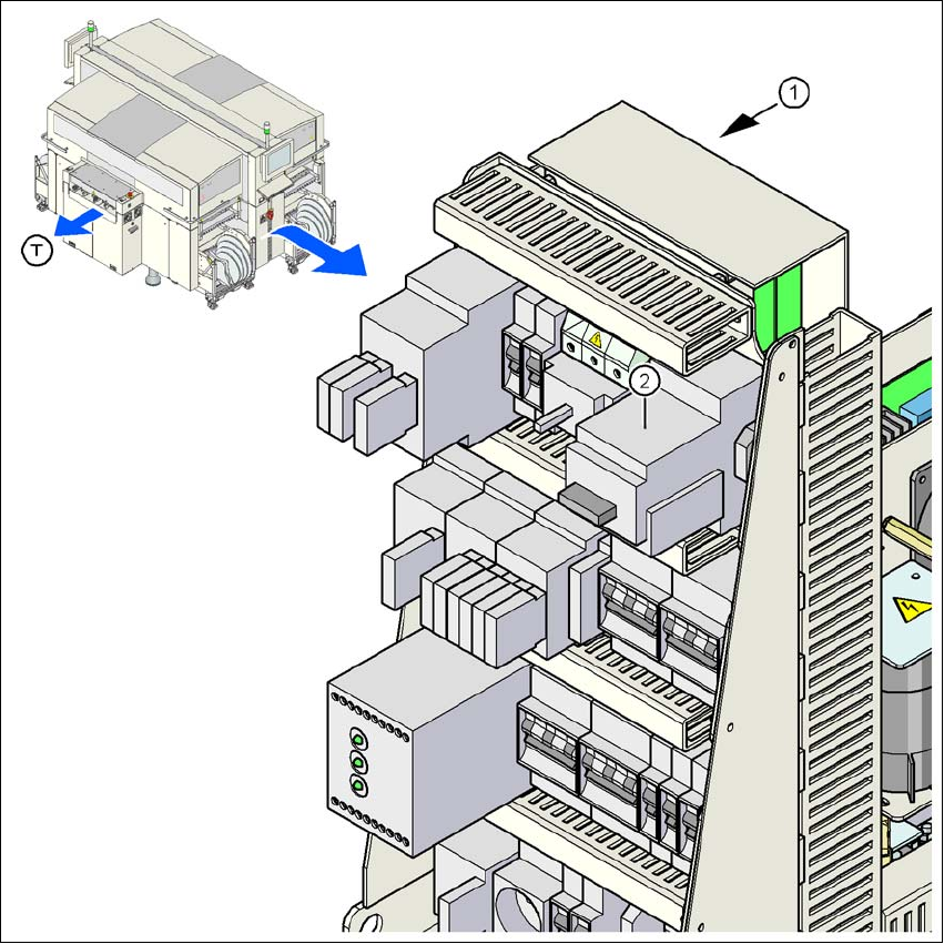Huvudbrytare Q1, Klämmor T1, T2, T3 0 V~