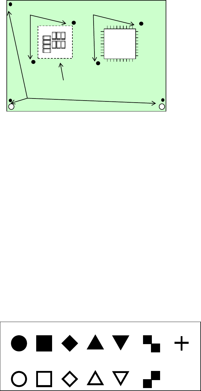 Note 1: Up to three PWB reference marks and up to six component placement area