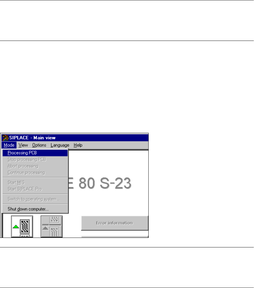 For a detailed description of the menu items "Stop processing PCB", "Processing PCB" and