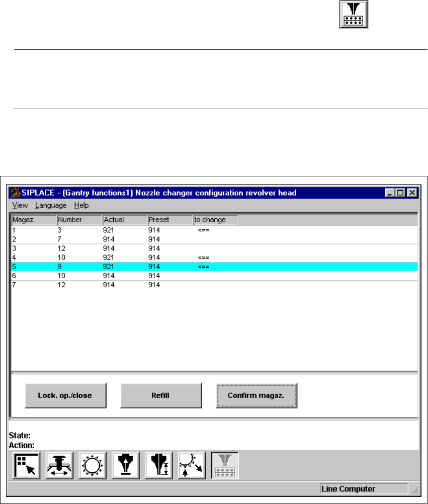 Fig. 5.2 - 6 "Nozzle changer configuration revolver head" screen