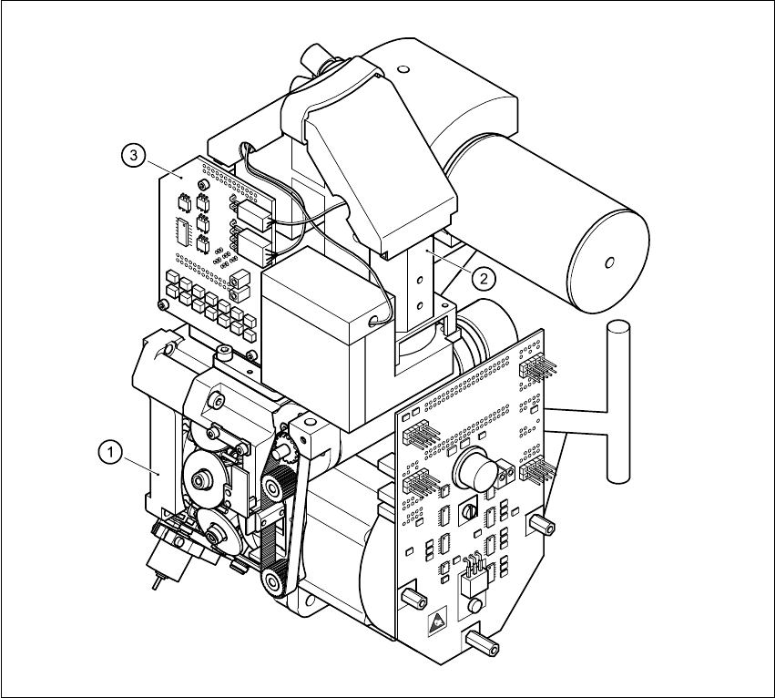 User Manual S-23 HM 6 Vision functions Software Version S R.405.xx 05/99 Issue 6.1 The vision systems on the placement system 167 6 Fig. 6.1 - 2 Com ponent camera sy stem Key to Fig. 6.1 - 2 (1) 12-nozzle rev olver head …