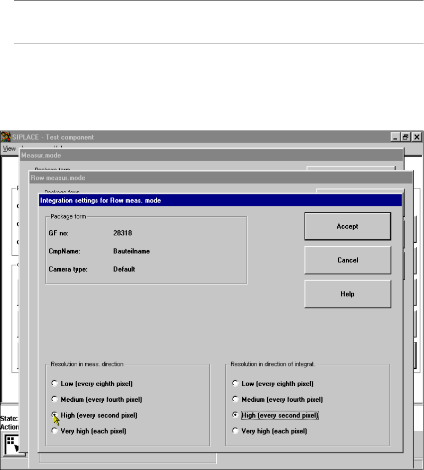Fig. 6.6 - 38 Measuring mode option, Row measuring mode integration settings menu