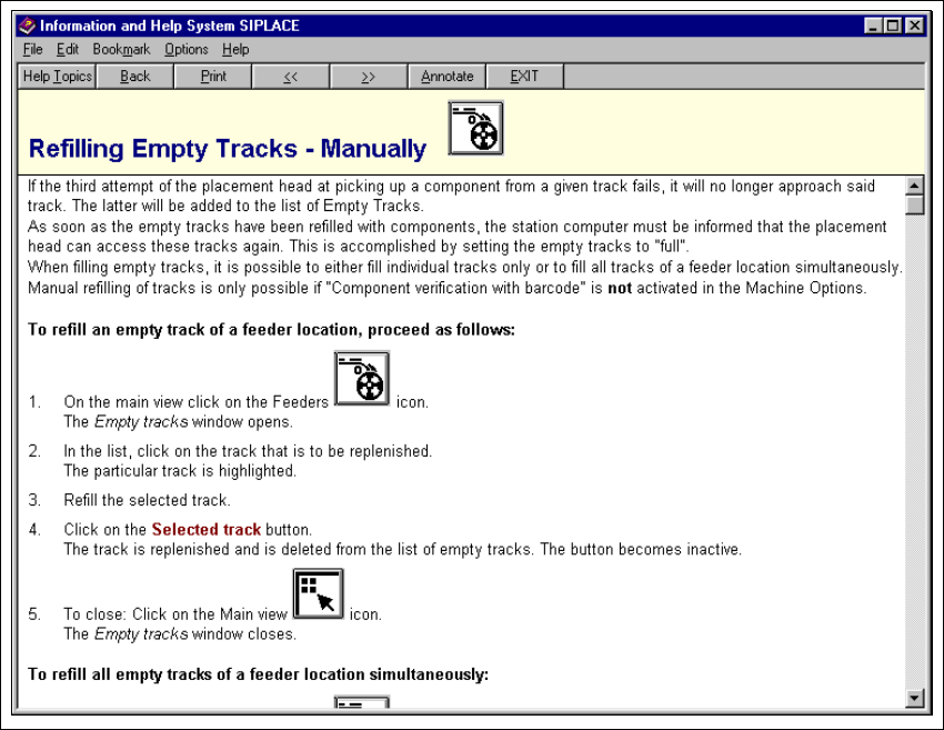 Fig. 9.1 - 4 Example: Help on the topic "Refilling Empty Tracks - Manually"