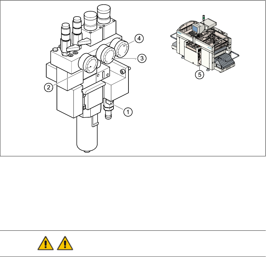 pressed air supply to the component tables and tape cutters or to the stopper (item 3 or 4 in