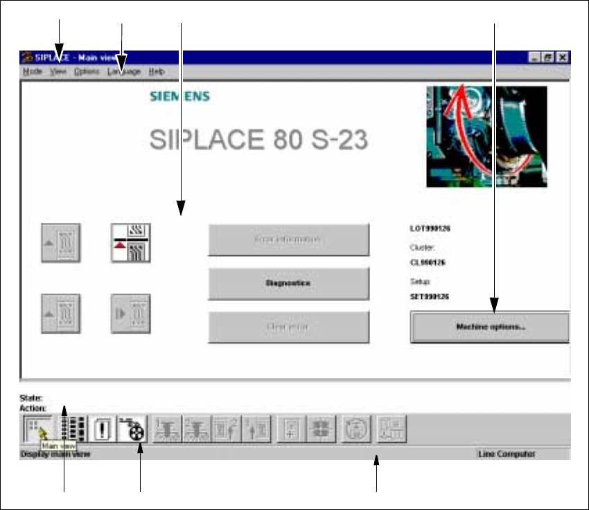 3 Introduction and Ba sic Concepts User Manual SIPLACE S-23 HM 3.2 Principles of the Graphic User I nterface Software Version SR.405.xx 05/99 I ssue 94 Caption bar 3 The capt ion bar d isplays t he name of the cur rent v…