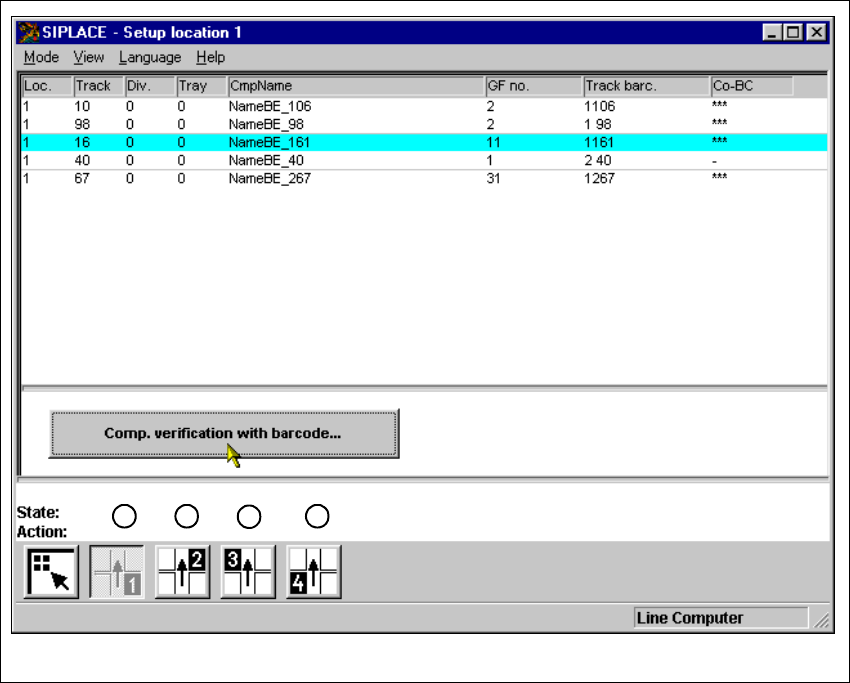 4 Placement Functions User Manual SIPLACE S-23 HM 4.1 Setup Display Software Version SR.405.xx 05/99 Issue 116 4.1.1 "Setup location x" V iew 4 È Clic k on th e ic on in t he toolbar in th e Main vi ew . The us…