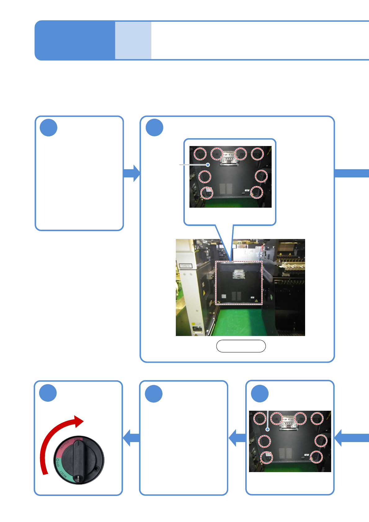 NPM- TT2 EJM1EC-MB-06 M-03 对真空泵过滤器的清扫方法进行说明 。 使用工具 : 十字螺丝 刀 (No.2) 所需时间 :30 分钟 ●作业过程中,注意不要碰撞到头。 6 真空泵过滤器的清扫 安装安全盖 6-7 -1 7 维修保养篇 6-7 8 解锁 ON 1 卸下后侧的托盘供 料器或者交换台车 ●托盘供料器时 (→P.14 -8) ●交换台车时 (→P.3- 2) 2 安全盖 卸下安全盖 安装后侧的托盘供 料器…
