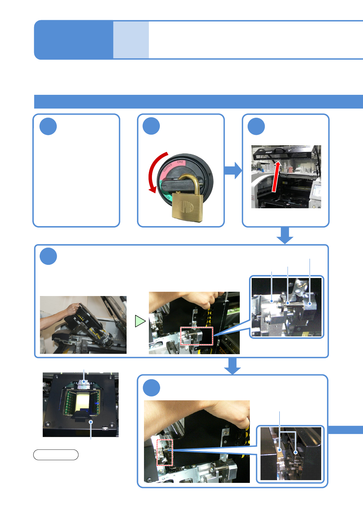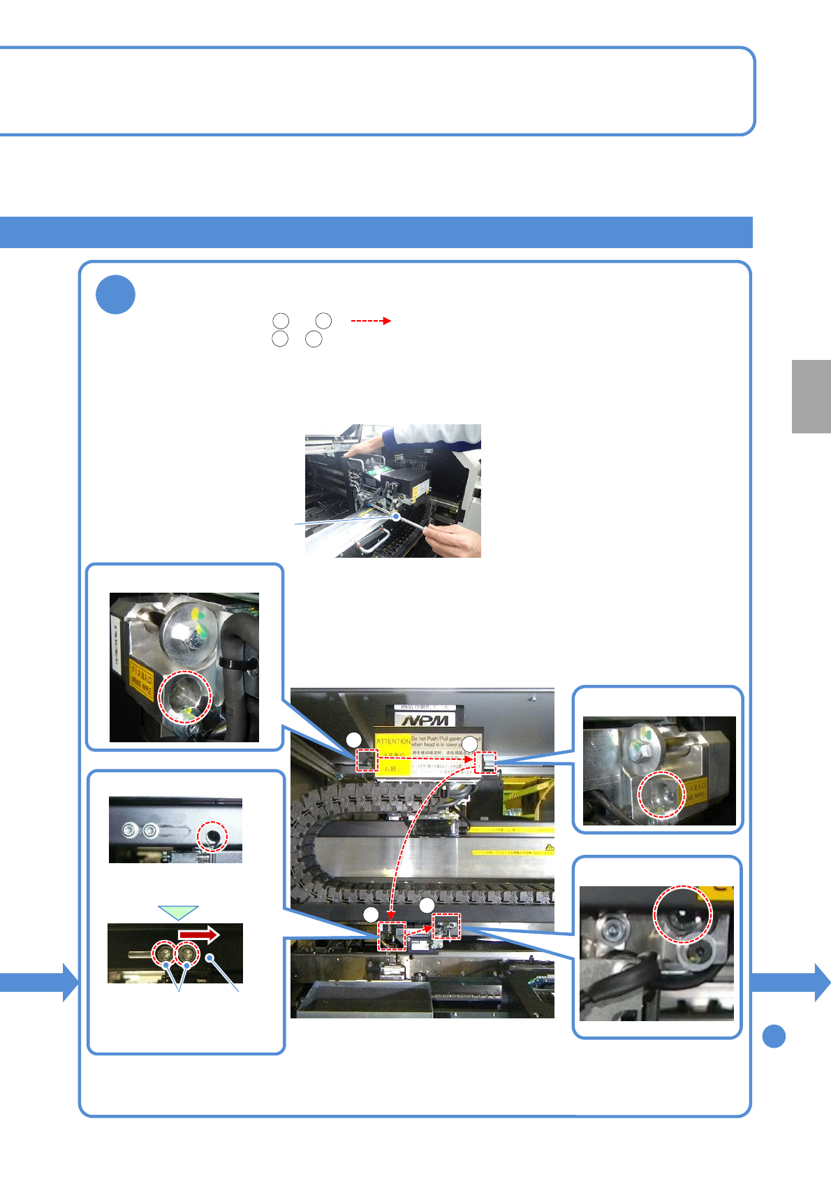NPM- TT2 EJM1EC-MB-11 M-02 所需时间 :10 分钟 ( 只包括贴装头 的安装时间 ) 贴装头的安装 1 11 - 1 -7 2 1 OFF 主电源开关置于 OFF ,上锁 3 卸下托盘供料器或 者交换台车 ●托盘供料器时 (→P.14 -8) ●交换台车时 (→P.3- 2) 注意 通过 8 吸嘴贴装头或者 3 吸嘴贴装贴装 BGA 、 CSP 时,请确认在 多功能识别 照相机单元上是否安装了侧面照明。 侧面照…