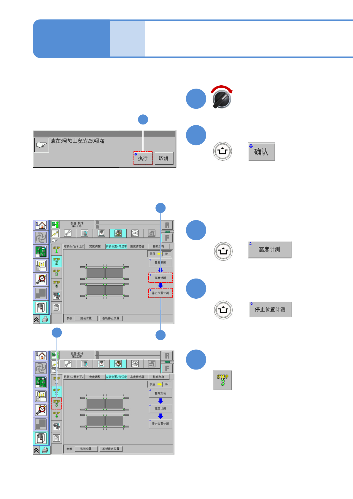 NPM- TT2 EJM1EC-MB-13 M-02 13-6 -3 贴装位置 / 传送带 2 维修保养篇 13-6 ( 进行校准作业 ) + 确认提示 伺服开关置于 ON + 确认是否正常结束 确认是否正常结束 10 9 12 13 10 13 11 + 11 12 确认是否正常结束 ( 贴装头移动到作业位置,并开始高度计 测 ) ( 贴装头移动到作业位置,并开始停止位置 的测量 )