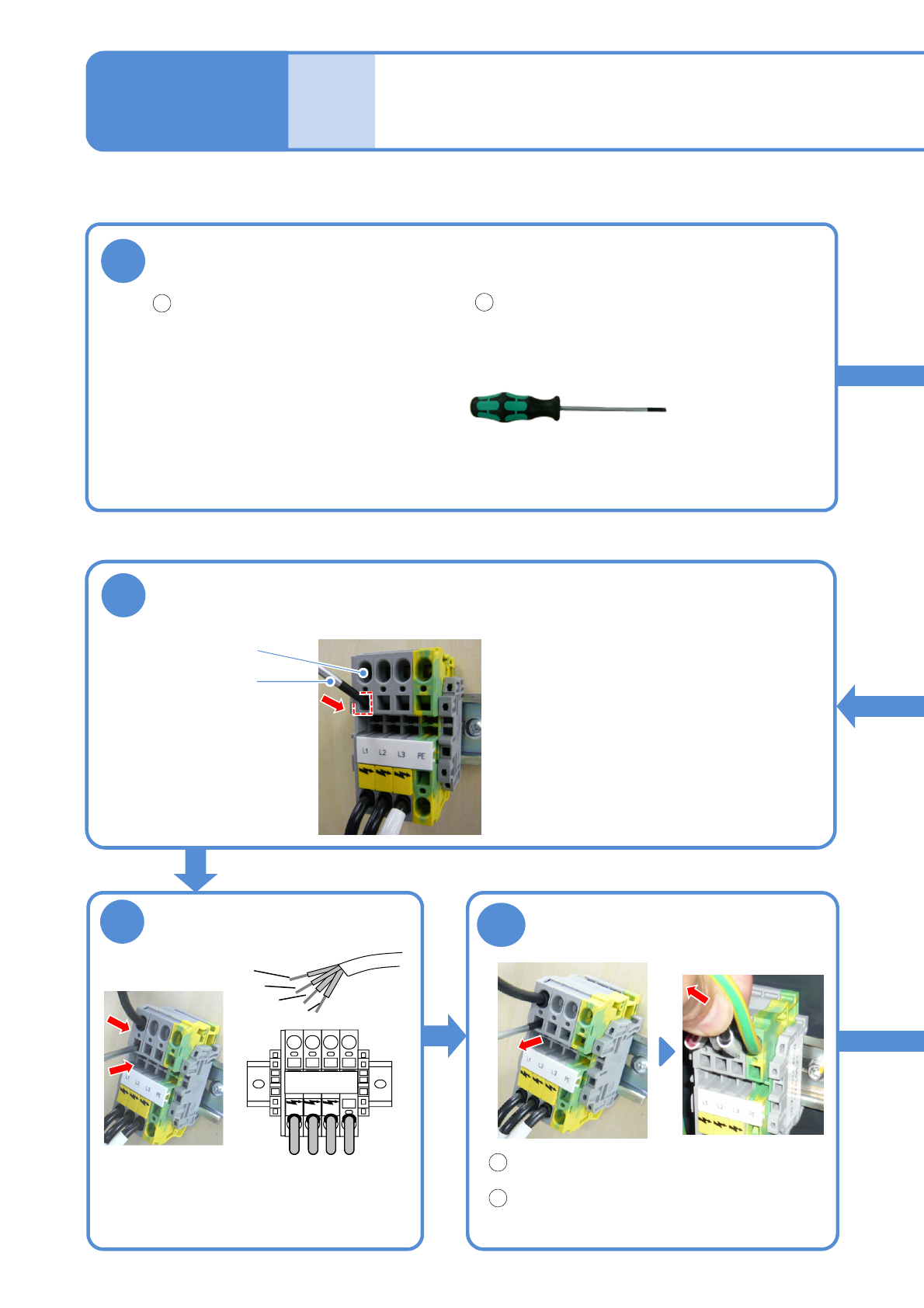 NPM- TT2 EJM1EC-MB-14 M-03 主电源 的连接 主电源的连接 14-4-2 -1 1 准备电缆,进行电缆的端末处理 准备 4 芯电缆。 ●断层面积 : 3.5 ~ 5.5 mm 2 ●推荐套头端子 ・ 生产厂家 : PHOENIX CONTACT ・ 型式 : 3.5 - 4.0 mm 2 Al4-12GY 5.5 - 6.0 mm 2 Al6-12YE 使用工具 : 十字螺丝 刀 (No.2) 、附属的专用螺丝刀…