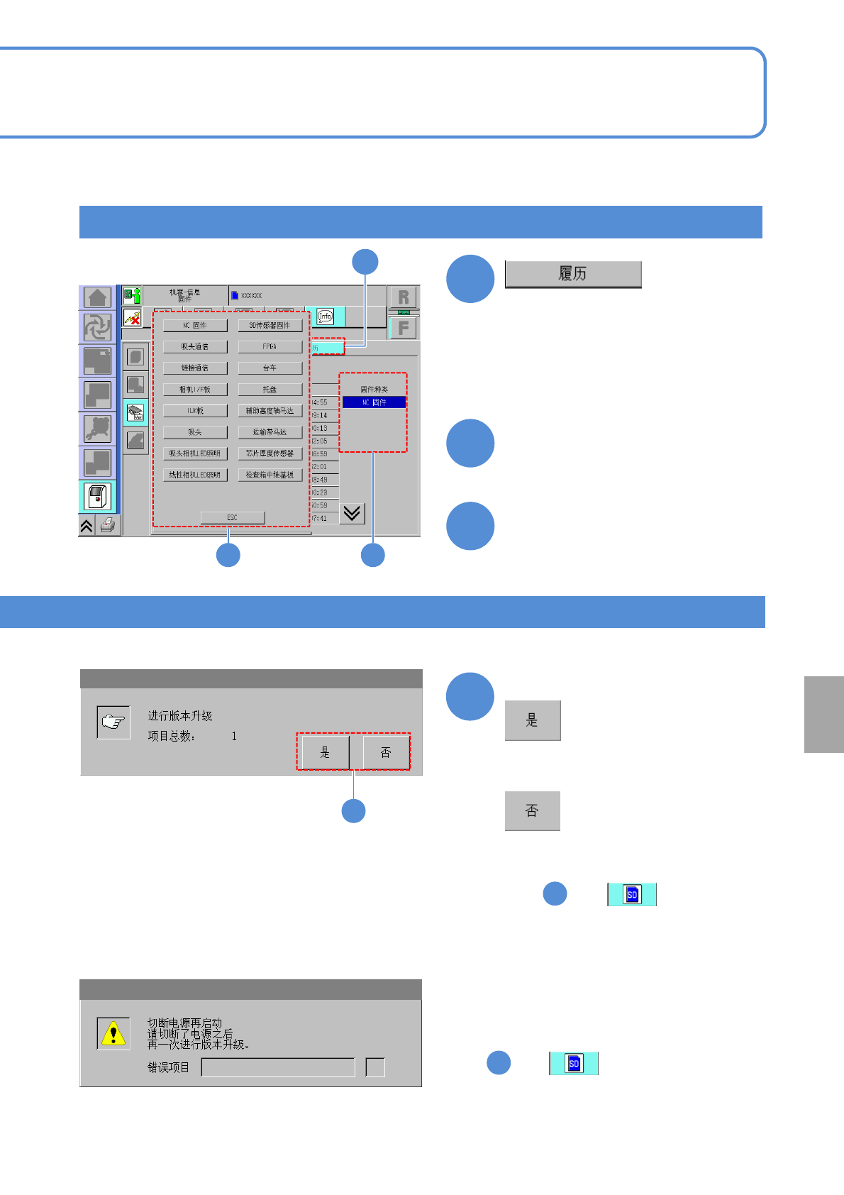 ●版本升级被中断时,会显示需要再次启动的
