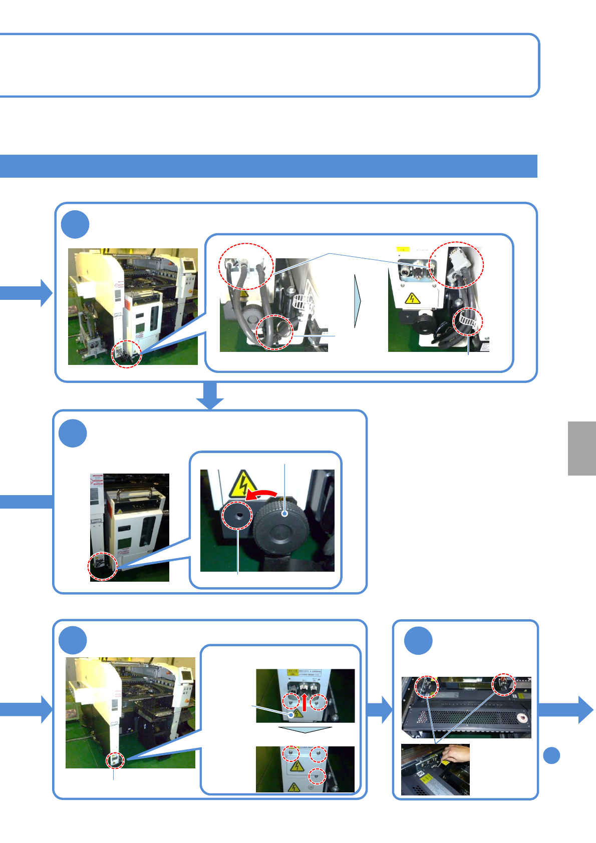 NPM- TT2 EJM1EC-MB-14 M-03 14-9 -3 17 连交换台车和单式托盘供料 器的切换方法 2 ①把单式托盘供料器切换为 17 连交换台车 1 对 17 连交换台车和单式托盘供料器的 切换方法进行说明。 所需时间 :30 分钟 使用工具:扳手 30 mm (2 个 ) 、六角扳手 (3 mm, 4 mm, 5 mm, 8 mm) 1 主电源开关置于 OFF ,上锁 OFF 2 3 6 解除托盘供料器的安全开关 使…