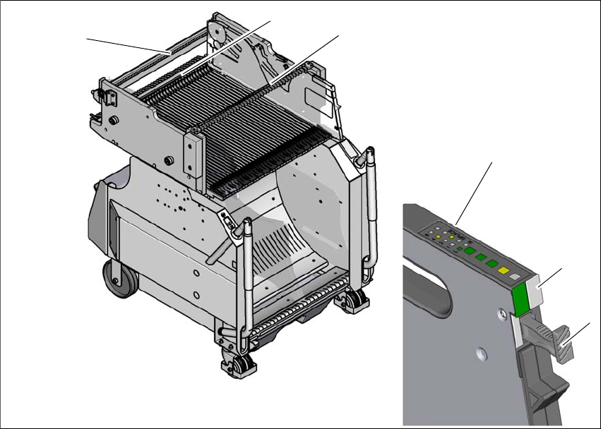 Stäng hämtningsfönstret (pos. 3 på bild 5.10 - 2, sidan 267) genom att spaken (pos. 4 på bild