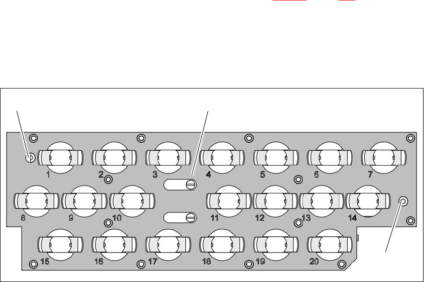 Bild 6.1 - 13 Pipettmagasin - urtagsnumrering, märken för bestämning av positionen och vinkelläget