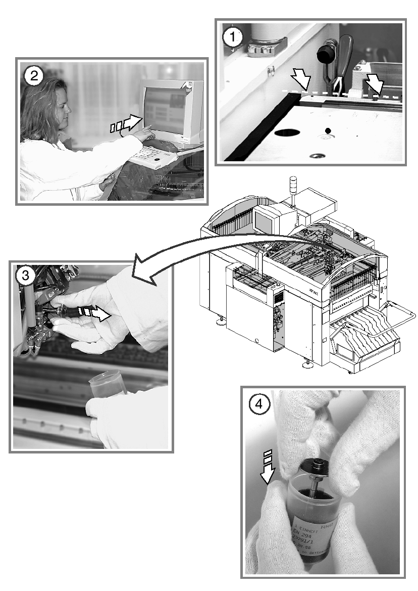○ 打開保護蓋並將懸臂推到 PCB 輸送帶的㆖方。