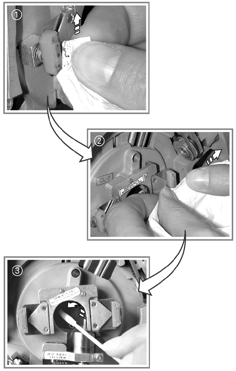 ○ 用無棉絮清潔布沾㆚醇擦拭清潔器塊。