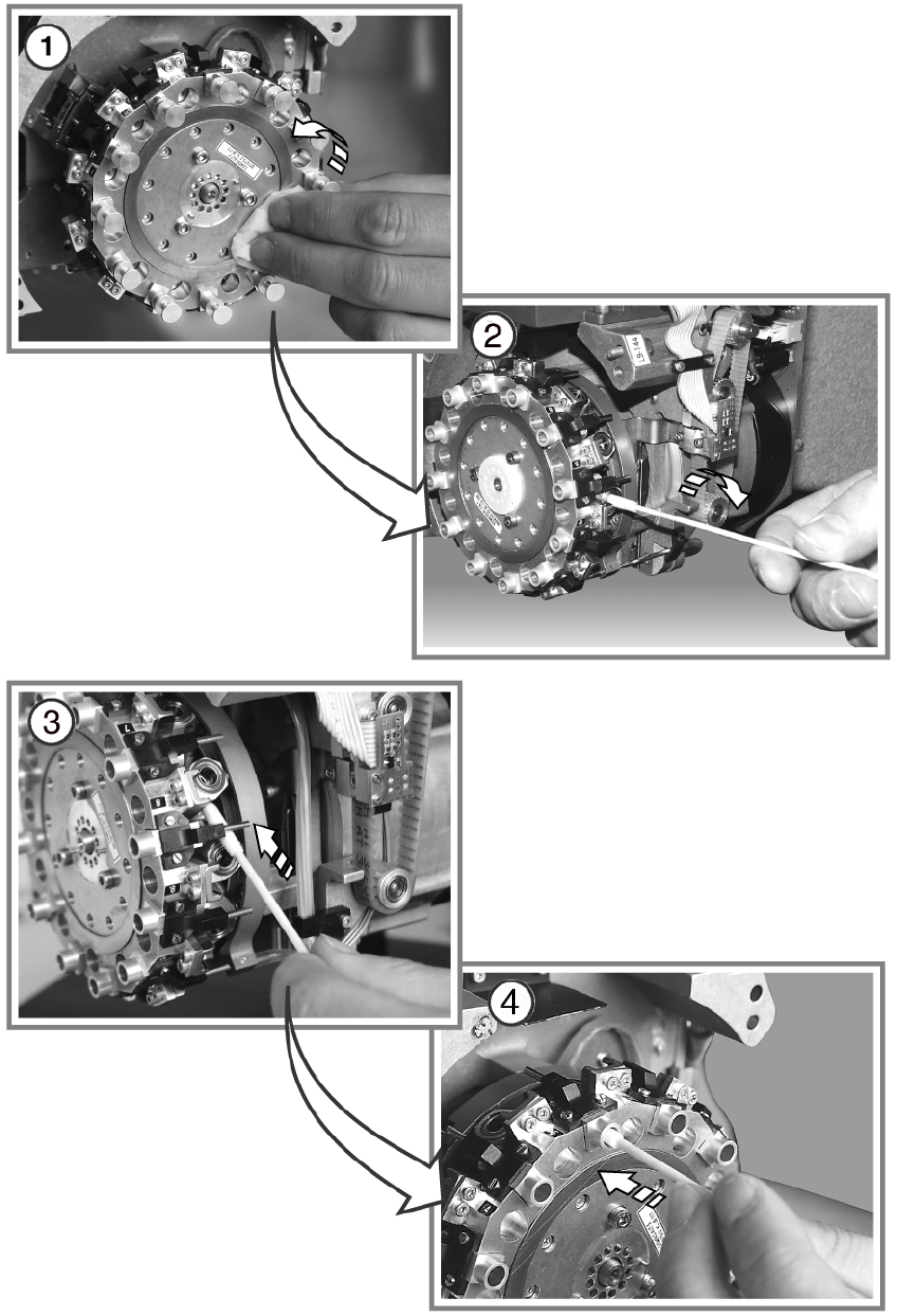 用無棉絮清潔布擦拭星型軸及分配盤。