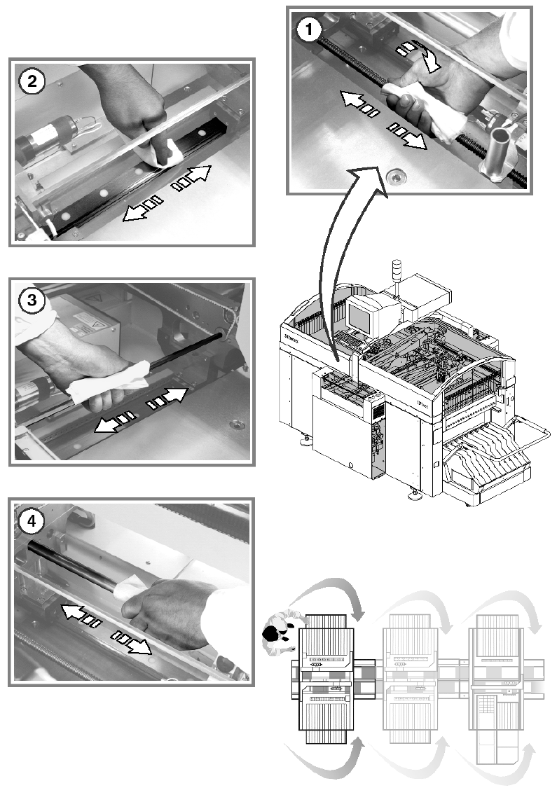 使用 SIPLACE 清潔紙巾清潔保養導軌的滑動表面。