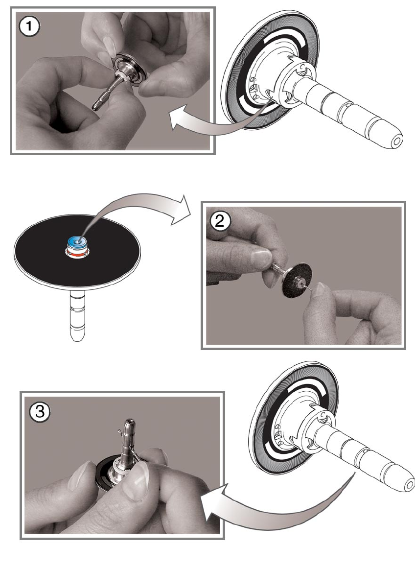 在您將鑽頭推入真空孔時請確定應同時轉動鑽頭,否則您會將汙物進㆒步推入套管 (Sleeve) ㆗。