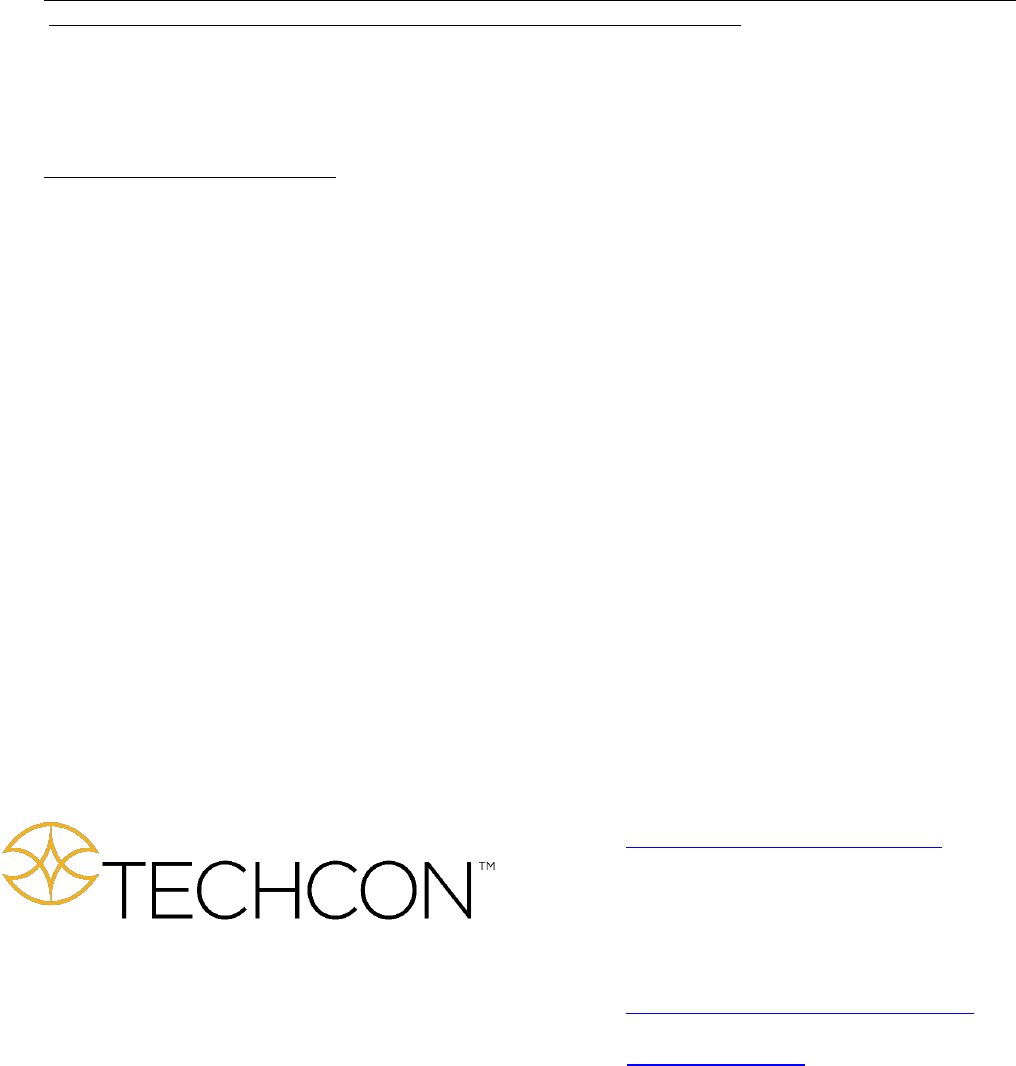 be liable for consequential or incidental damages. A return authorization is required from Techcon Systems prior