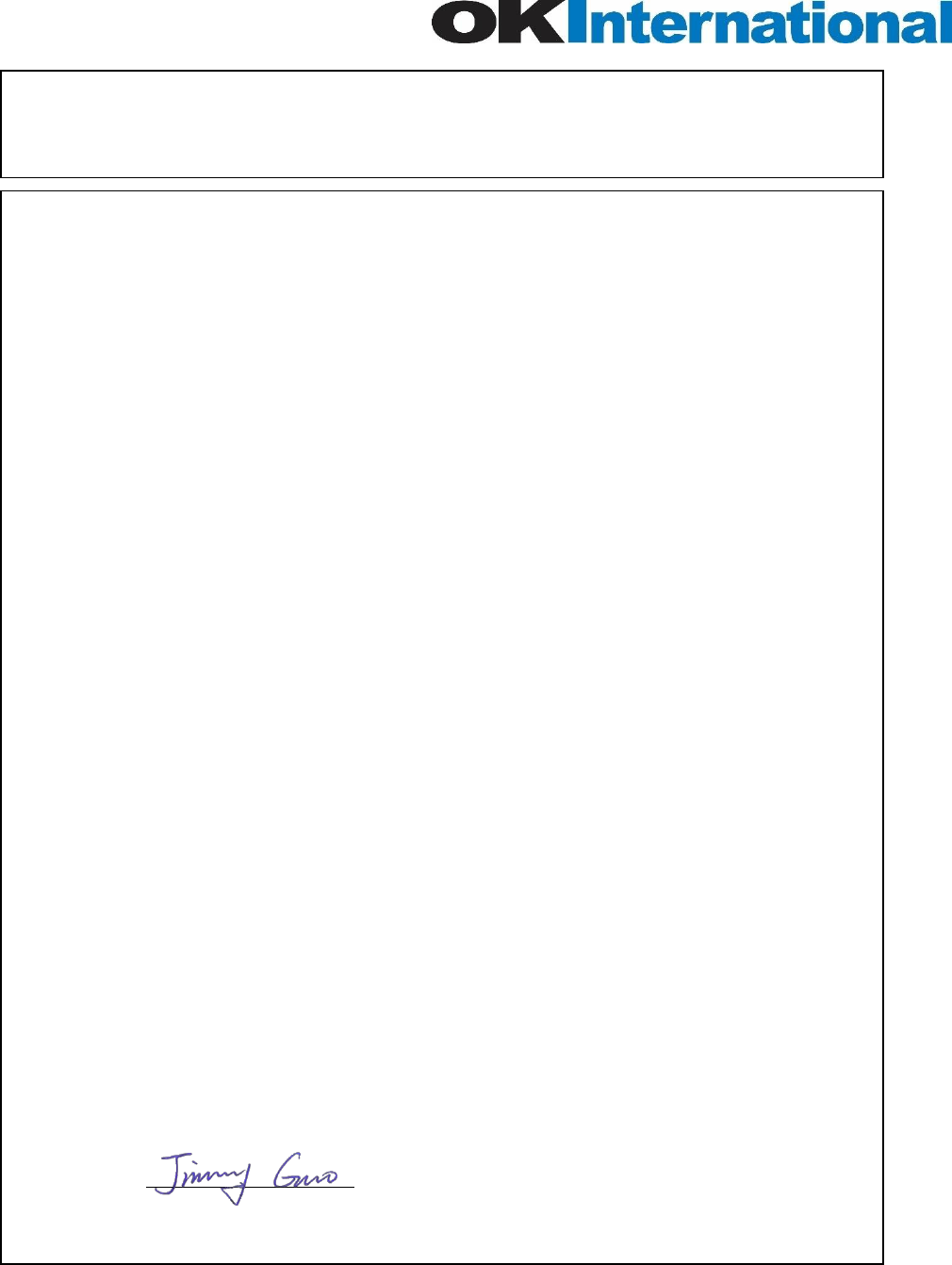 Manufacturer Contact: OK International Ltd.