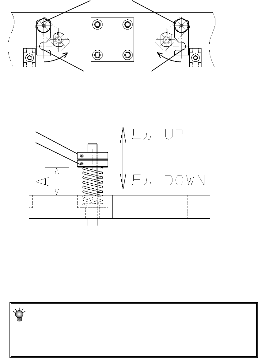 一边按住调节螺母1,一边松调节螺母2,转动调节螺母1调整弹簧力。调整后,一边按住调节螺