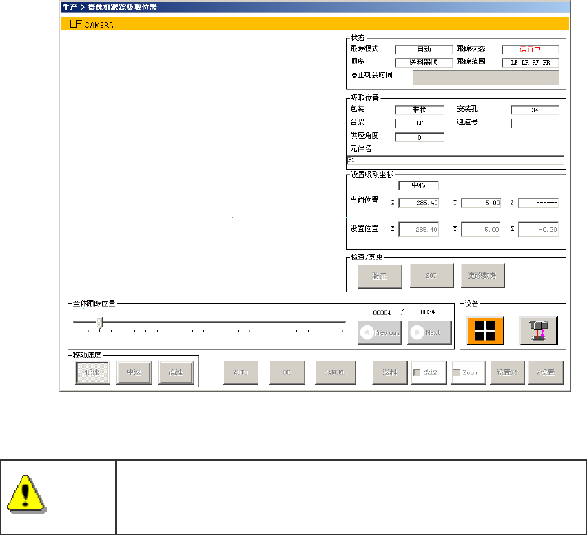 显示以下的摄像机跟踪吸取位置画面。