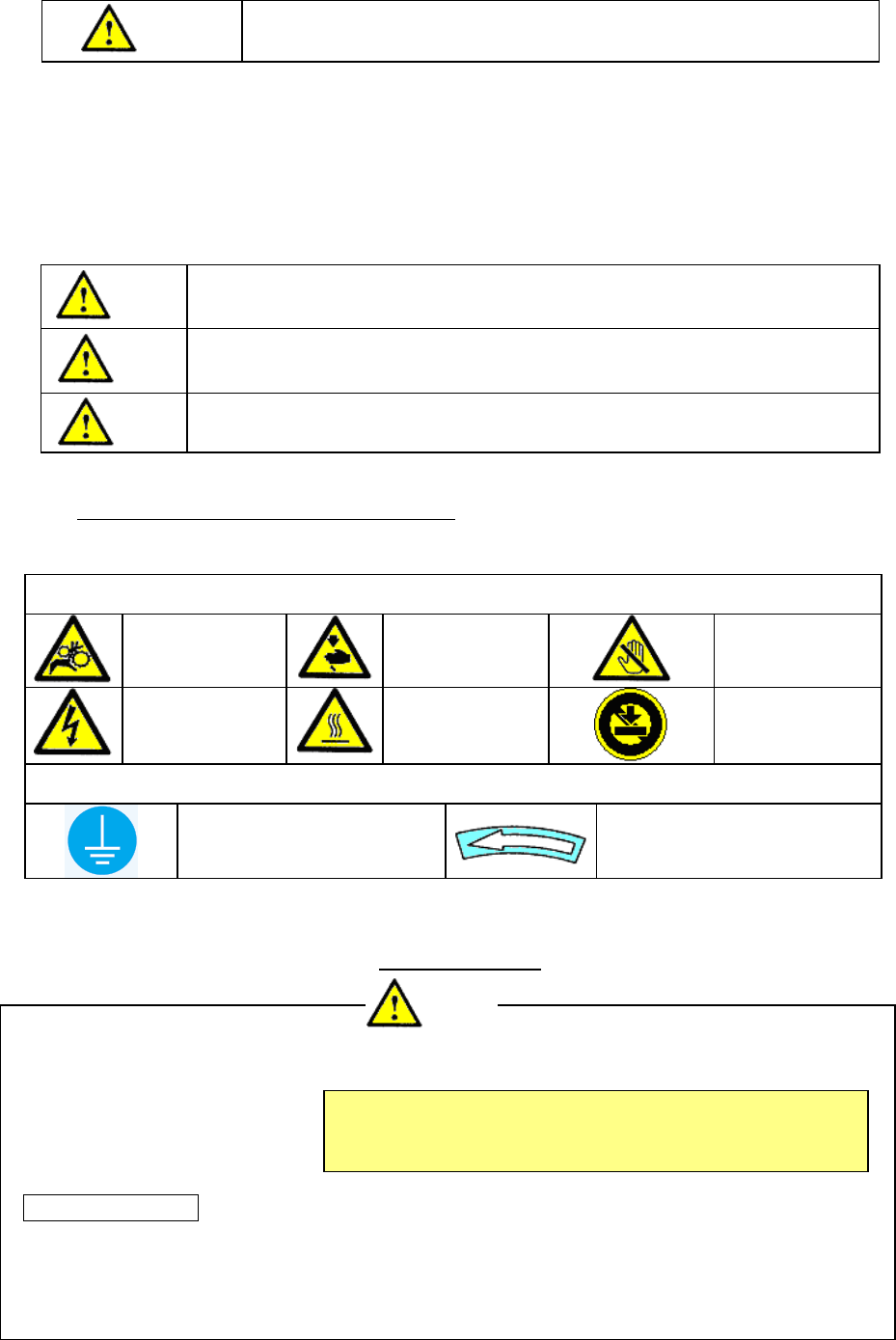 1. 为防止操作不熟悉而引起的事故,请只有受过本公司指定的操作培训、并具备适当的知识和操作技能