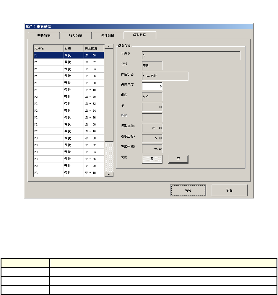 使用 选择进行生产时,是否从该位置吸取元件。 操作员
