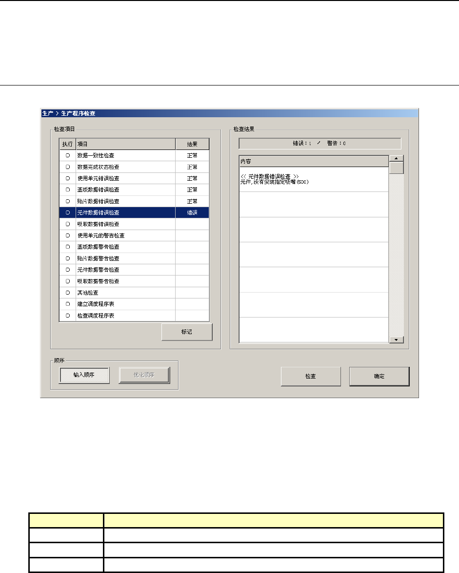 开始生产之前,会自动进行生产程序的检查,显示其结果。