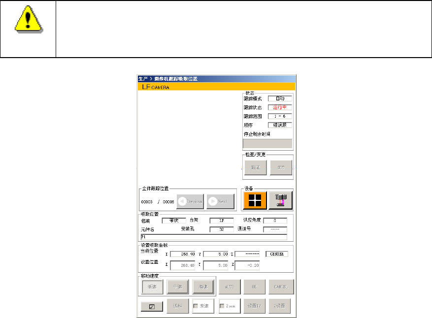 按[确定]按钮开始吸取位置的校正后,显示吸取位置摄像机跟踪画面。
