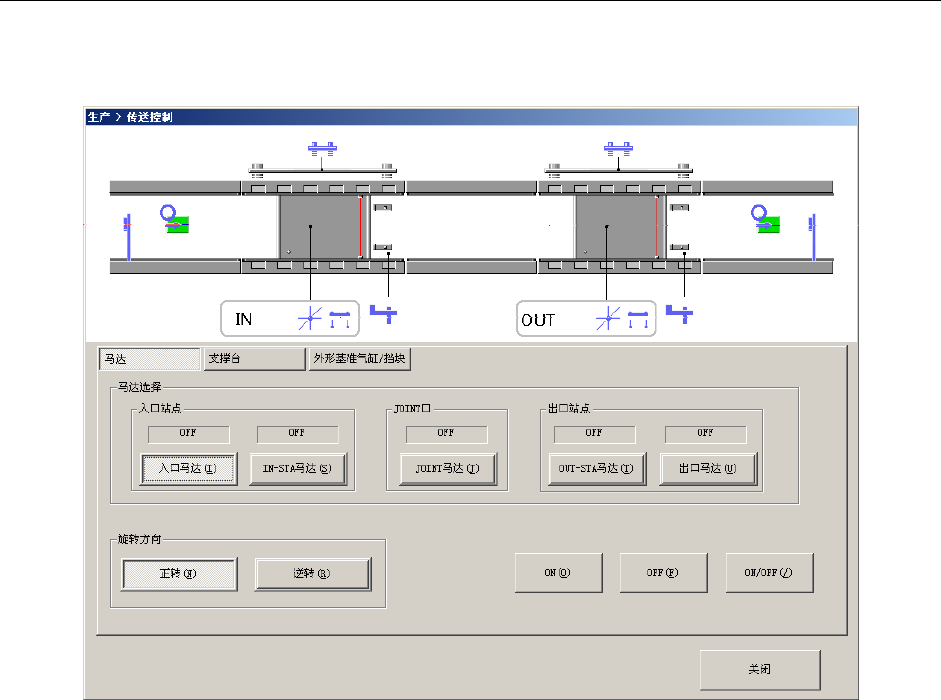 在传送道路状态画面显示后,执行传送动作,进行马达、支撑台、外形基准气缸/挡块等有关