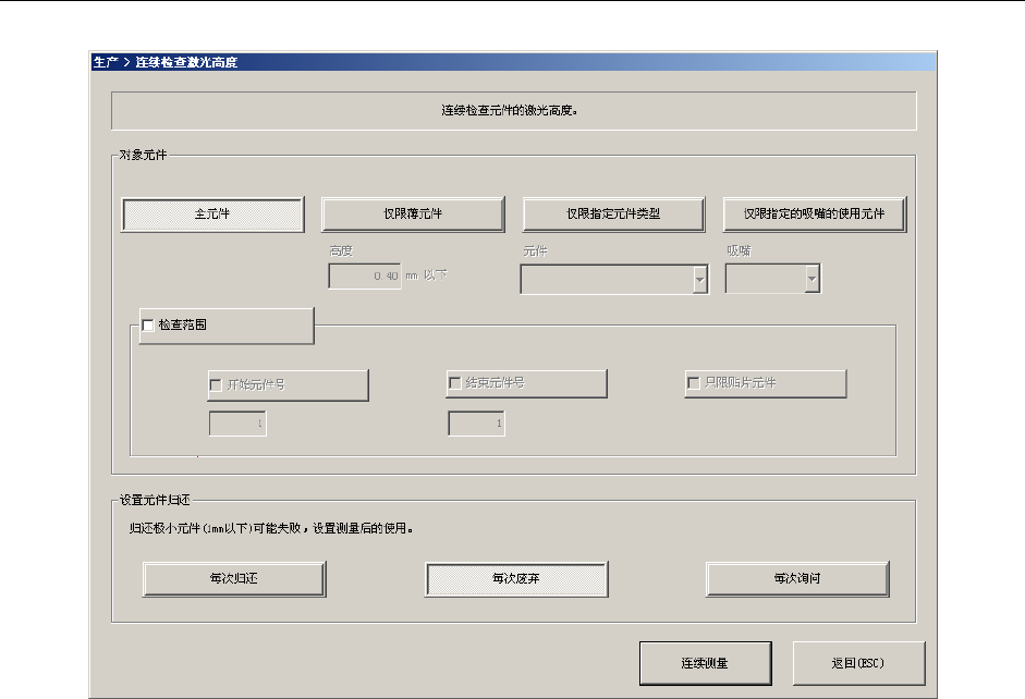 图 2-11-5-3-1 设定连续检查激光高度条件